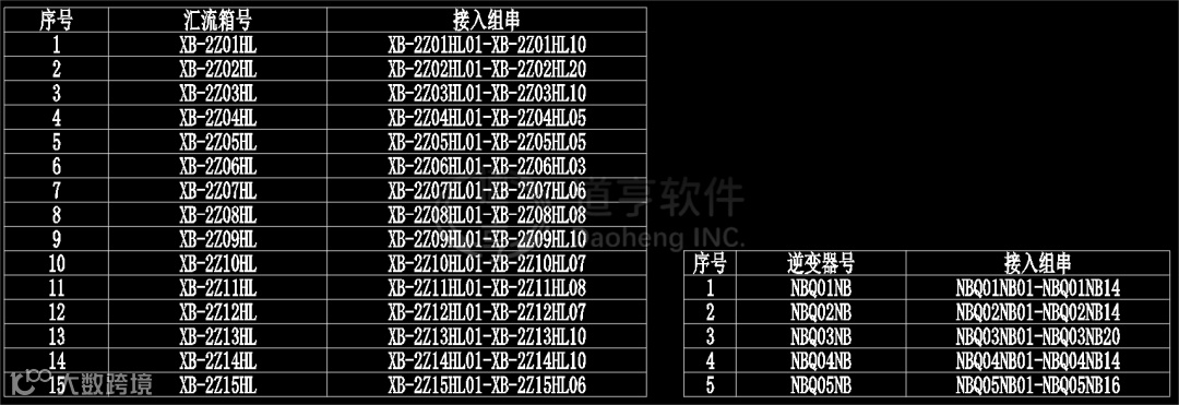 ⑦实现全部设备分层批量编号,减少重复工作;自动提取接线图、设备编号表(含场区、组串、变压器、逆变器等)等成果文件,实现高效的设计成果导出。