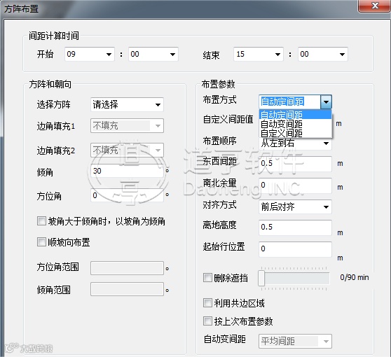 ③可进行多种布置方式优选,用户可根据实际需求通过南北余量、起始位置、倾角、方位角组合等优化设计方案。