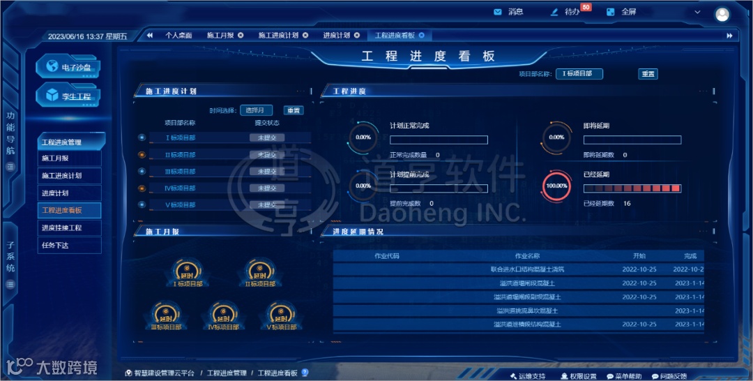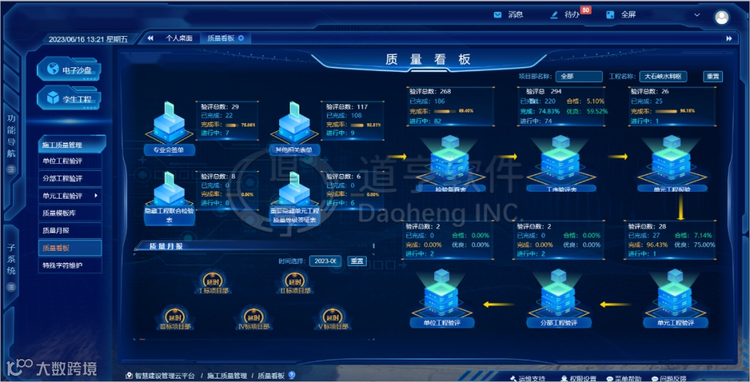 道亨软件水利工程智慧建管平台目前已在新疆大石峡水利枢纽工程、洼地水库等多个项目中应用,为工程各参建方提供数字化、智能化的高效协同平台。基于数字孪生技术,该产品构建“数据一个源、施工一张图、业务一条线、管理一张网”的水利工程智慧管理模式,实现工程建设质量、进度、安全、成本的高效管控,辅助管理决策优化,为水利工程全生命周期数字化、智能化管控提供可靠支撑,助力工程实现高质量建设。