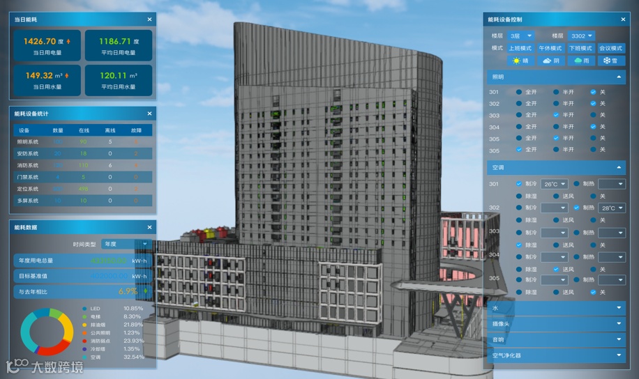 该平台实现了大厦内包括水、电、冷(热)、气等各类能源的实时监测和能耗监控,以三维可视化形式展示楼宇用能的实时状态,同时提供基于BIM的空间管理、设备管理等智慧楼宇的应用,以及基于大数据和人工智能的智慧预警服务,依托AR技术进行可视化呈现,实现企业和用户的用能安全、设备运行和能源环保。