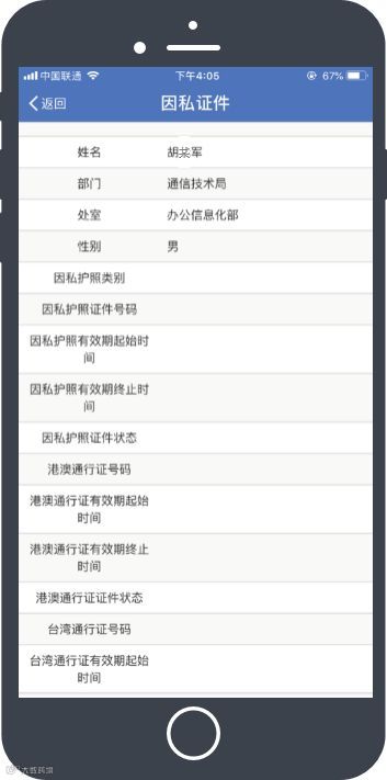 手机端解决的问题 过去,个人将护照上交后,遗忘护照信息,需要找人事干部查询,耗时费力 |