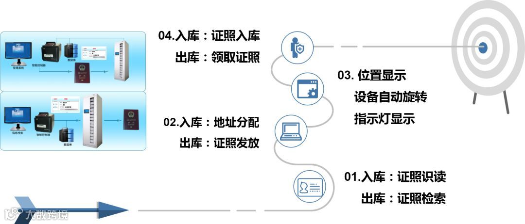 • LED指示位置,自动旋转定位,实现证照出入库