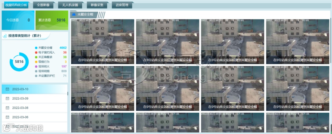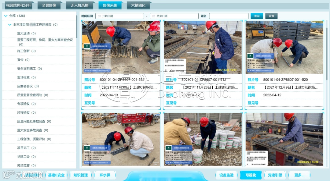 通过视频监控、视频结构化分析、单兵、智能安全帽、无人机巡检等方式进行现场巡查及影像采集分析,以可视化的方式实现对工程建设过程进行全方位监管,严格把控关键节点施工安全和质量,在监督施工现场是否规范施工的同时,保证建筑材料及设备的财产安全、对违反规定的行为提供检查证据。