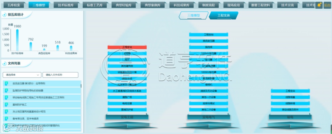 结合工程建设相关成果,坚持问题与目标导向,以科技创新为引领,以数字化平台为载体,对工程技术标准体系、标准工艺、科技成果、典型案例、典型经验等文件全面梳理总结,形成技术标准化与知识管理平台,并实现查阅成果文件与相关工程实体三维模型功能关联,利用数字化手段提升工程建设知识管理与项目技术管理的规范化、标准化、数字化水平。