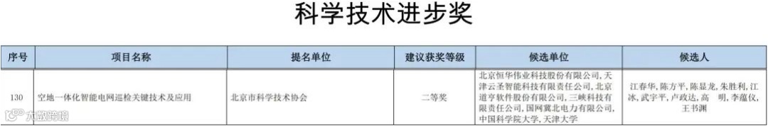 日前,2021年度北京市科学技术奖评审结果正式公布。其中,道亨软件参与完成的“空地一体化智能电网巡检关键技术及应用”项目荣获2021年度北京市科学技术进步二等奖。