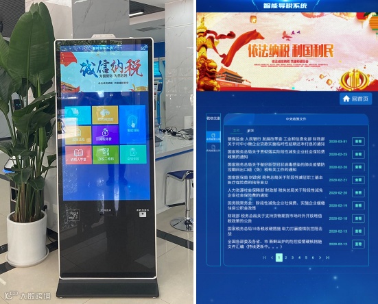 在5G无人值守智能办税服务厅,全省第一台5G智能导税终端由浪潮协同税局自主研发,集智能导税、大厅3D室内导航、政策法规、减税降费、智能咨询、纳税人学堂、办税二维码、疫情专题等诸多涉税服务功能模块于一体,具备208项涉税业务办理导引,二维码“扫一扫”可查阅14类办税指南。纳税人入厅后,能够在第一时间了解掌握最新的税收政策,以及业务办理流程需要准备的相关材料,有效节省了纳税人办税时间,提高了办税效率。办税方式智能升级,实现了对纳税人办税流程的智能处理、快捷办理,拓展了税收服务的深度。