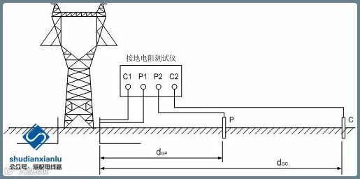 电位极离接地装置的距离DGP,等于电流极离接地装置的距离DGP的0.618倍。
