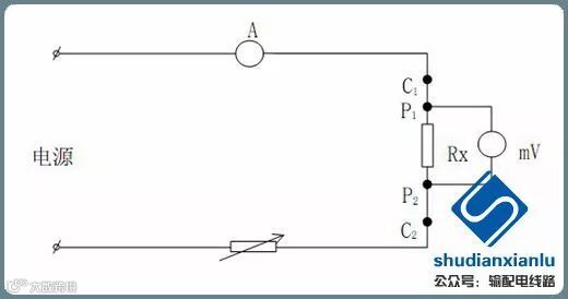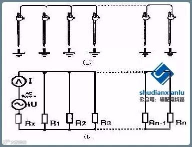 这是根据接地电阻的定义而产生的非常原始的方法。在测定电阻时须先估计电流的大小,选出适当截面的绝缘导线,在预备试验时可利用可变电阻R调整电流,当正式测定时,则将可变电阻短路,由安培计和伏特计所得的数值可以算出接地电阻。