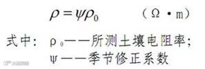 土壤电阻率应在干燥季节或天气晴朗多日后进行,因此土壤电阻率应是所测的土壤电阻率数据中最大的值,为此应按下列公式进行季节修正:
