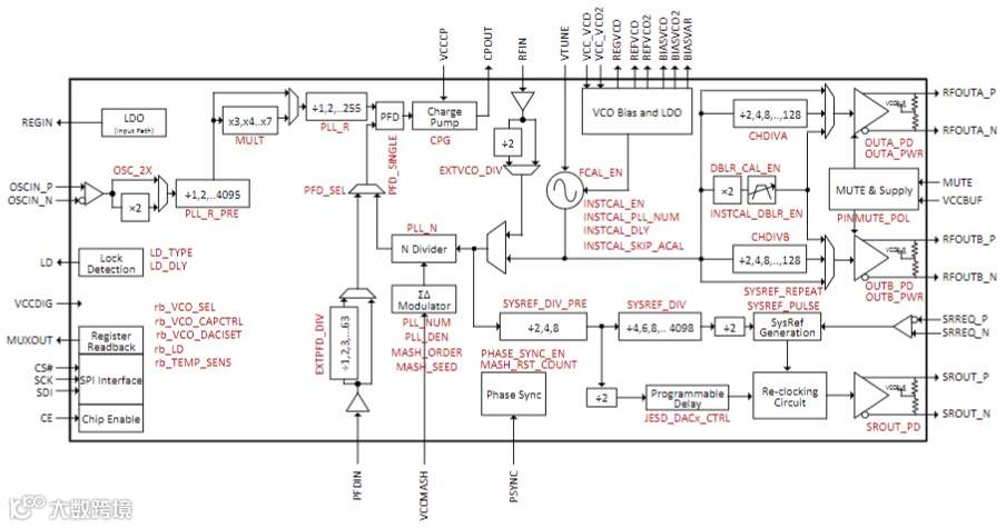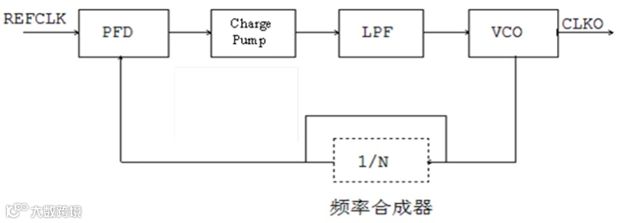 PLL模块通常包含鉴频鉴相器(Phase Frequency Detector-PFD)、电荷泵(Charge Pump)、低通滤波器(Low Pass Filter -LPF)、压控振荡器(Voltage Controlled Oscillator -VCO)、频率合成器(Frequency Synthesizer)。