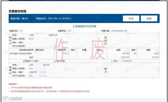 若查验无误,将显示查验次数、查验时间及票面信息。如已作废,票面有红字提示。