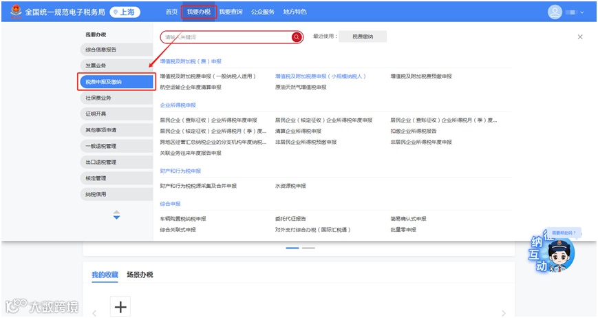 可通过以上路径进行增值税及附加税(费)申报、企业所得税申报、财产和行为税申报等多种税费申报。
