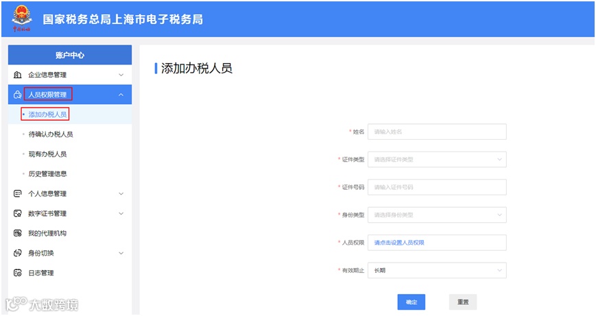 新电子税局-【账户中心】-【人员权限管理】-【添加办税人员】