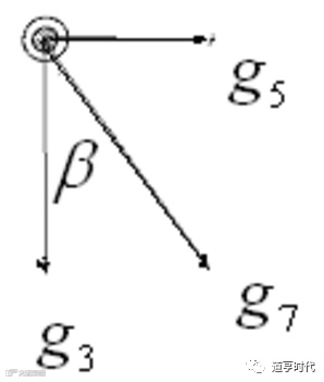 导线覆冰有风时,综合比载g7为垂直比载g3和覆冰风压比载g5向量和,如下图所示: