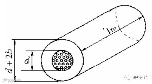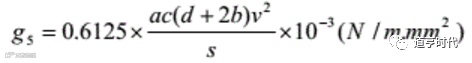 覆冰导线每平方毫米的风压荷载称为覆冰风压比载,此时受风面增大,有效直径为(d+2b),可按下式计算: