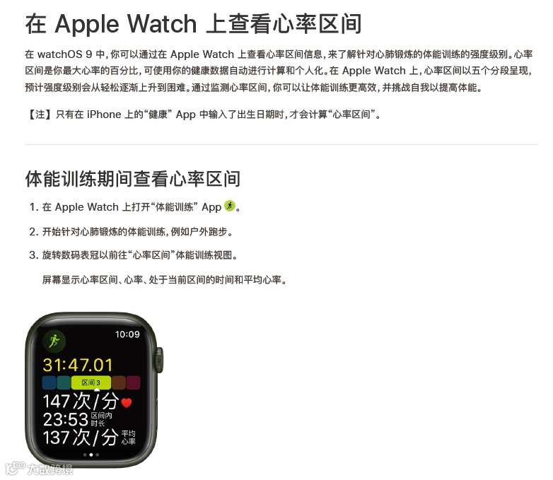 首先,苹果官网Apple Watch查看心率区间的功能如下: