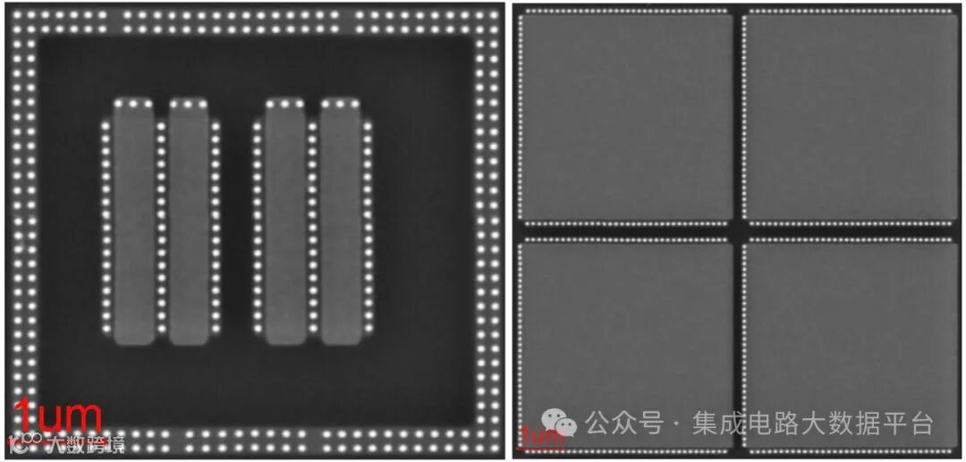 多晶层MOS管(左)和电容(右)的局部器件拍摄样图