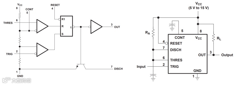 以下是ST和NXP公司的NE555芯片的电路原理图。