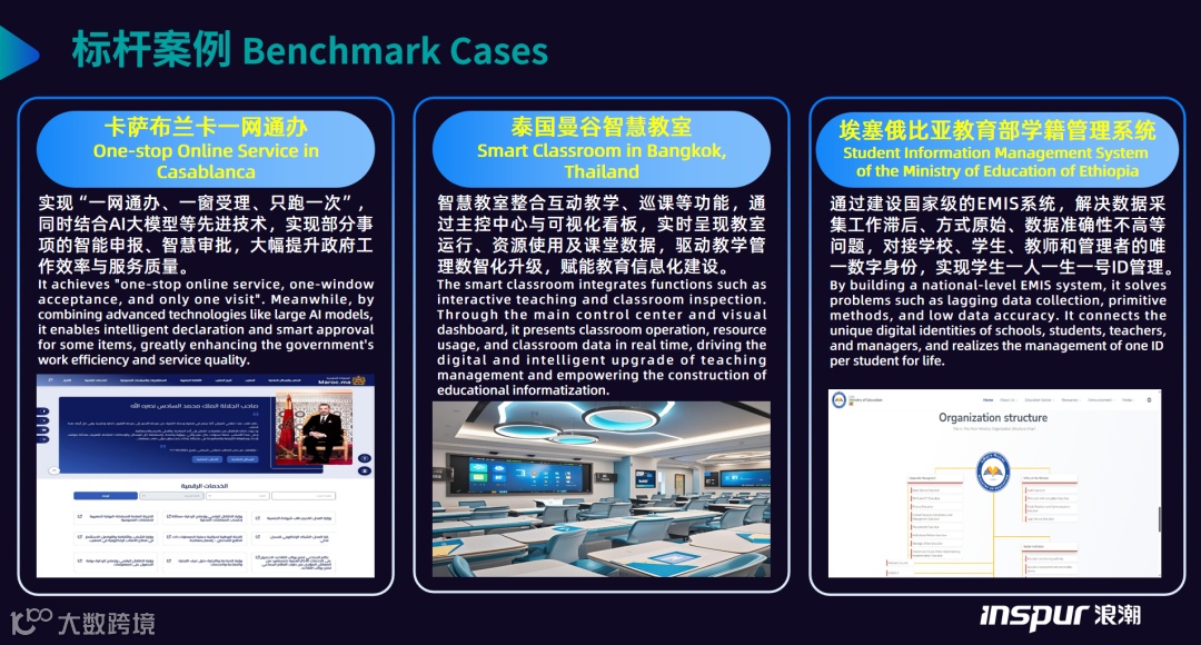 中国中小学生学籍信息管理系统,泰国曼谷智慧教室、马来西亚AI教育科技城、摩洛哥卡萨布兰卡一网通办、埃塞俄比亚教育部学籍管理系统等国内外知名数字化转型案例也在展台一同精彩亮相。