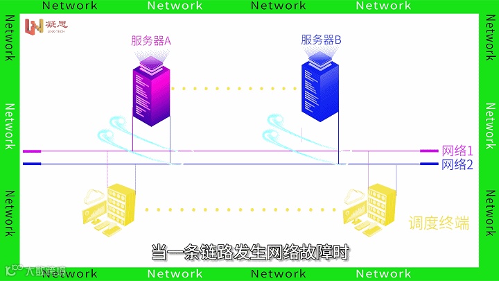 当一条链路发生网络故障时,另一条链路仍然正常通信,保证业务连续性,并发出链路故障告警。