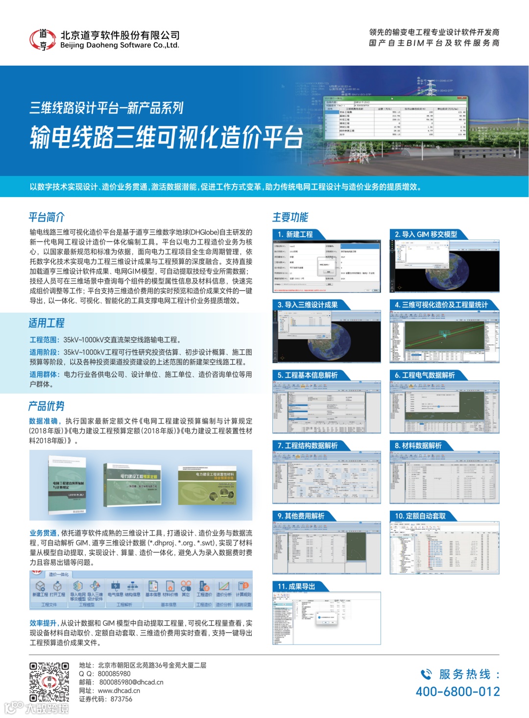 在新型电力系统建设、输配电价改革、数字化转型等宏观背景下,面向电网工程强化精准投资、优化资源配置、提高投资效率等需求,道亨软件依托全过程造价管控理念,研发新一代电网工程设计造价一体化编制工具——基于GIM的输电线路三维可视化造价平台,旨在通过技术创新,优化传统设计造价业务流程,整合工程数据价值,持续助力合作伙伴在数字化转型战略下的改革提升。