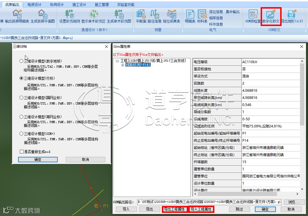 5.GIM属性表增加导出、导入工程属性表。由于GIM工程会多次修改,GIM属性表部分参数会根据修改发生数据变化。该功能支持GIM属性表数据实时刷新,客户导出GIM时无需重复填写。