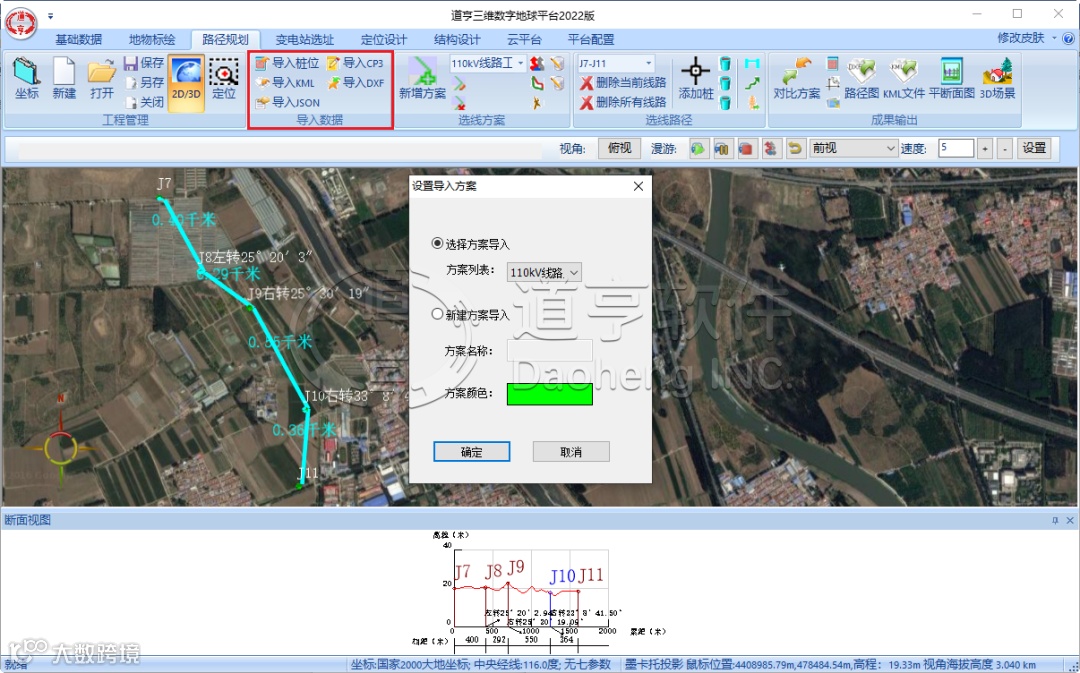 1.导入数据增加选择方案功能。多个数据可以导入一个路径方案中,便于生成多线路段工程数据。