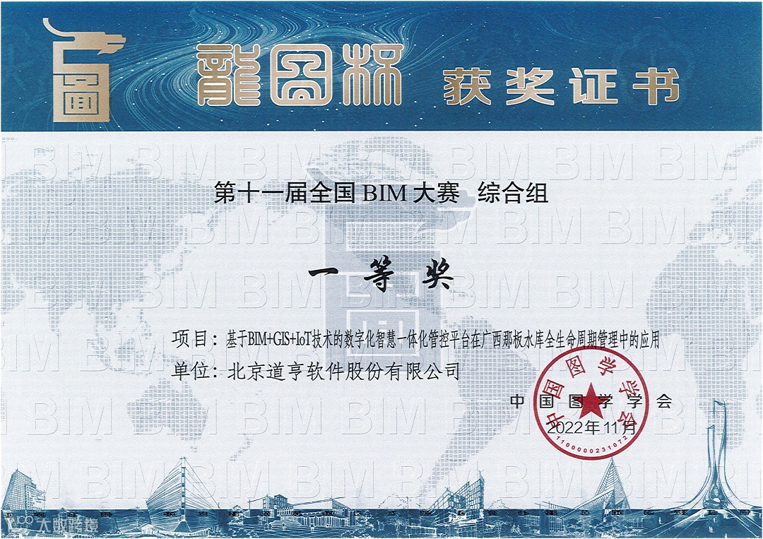 ● 基于BIM+GIS+IoT技术的数字化智慧一体化管控平台在广西那板水库全生命周期管理中的应用项目获中国图学会龙图杯BIM大赛综合组一等奖(→点击查看详情)