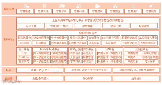 BIMWise是智慧城市场景中的核心系统。系统坚持开放的生态,深度融合了云计算、物联网、人工智能、低代码快速开发等前沿技术,向用户提供一整套解决方案落地的行业应用组件,能够像“搭积木”一样,为电力、石油石化、交通、水利等行业快速提供全面的平台级技术支持,助力各行业各环节数字化改进和发展。