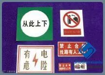 标示牌 分为警告、允许、提示和禁止等类型。警告类如“止步,高压危险!”;允许类如“在此工作!”、“由此上下!”;提示类如“以接地!”;禁止类如“禁止合闸,有人工作!”、“禁止合闸,线路有人工作!”、“禁止攀登,高压危险!”等。