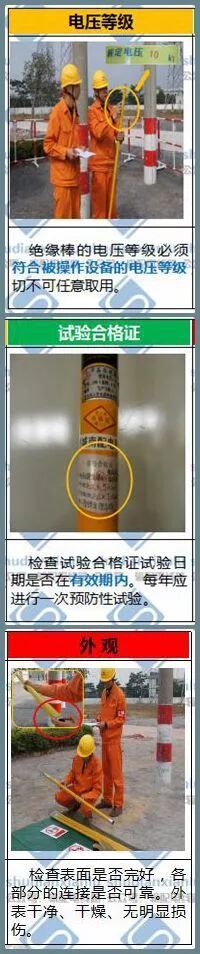 1.使用绝缘棒时,应检查绝缘棒的电压等级、试验合格证及绝缘棒表面是否完好、干净、干燥,各部分的连接是否可靠。