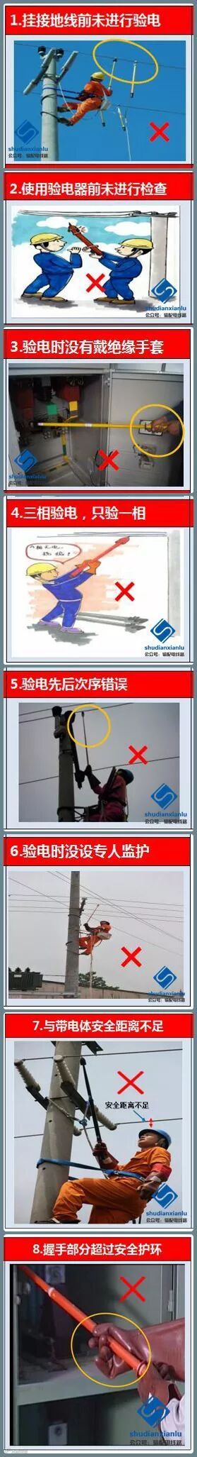 2.高压线路用低压接地线或低压线路用高压接地线。