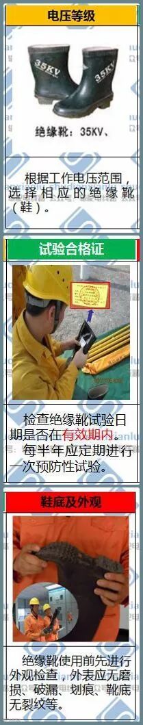 绝缘靴使用前没检查试验合格证试验日期是否在有效期内。