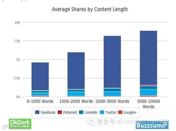 下表的大数据研究表明,3000-10000个单词的文章,在社交媒体上获得最多平均转发分享量(8859次)。