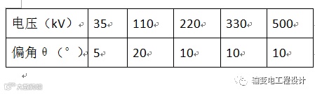 如出线偏角大于上列数值则需要采取出线挂点偏移等措施,并对其跳线的安全净距离进行校验。