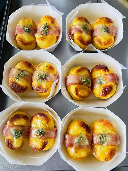 搭配鸡蛋沙拉、土豆沙拉、培根肉、芝士