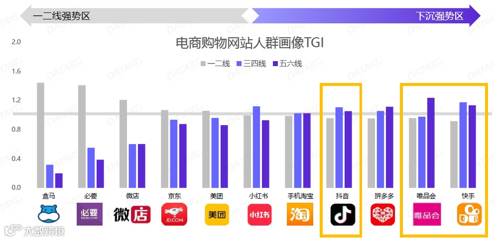 下沉市场网络发达,可以使用互联网的娱乐产品触达下沉用户,传播内容和产品要简单有趣。带有娱乐&便宜属性的短视频电商、特卖电商,能够为消费者产生场景消费引导,具有便宜属性的特卖平台如唯品会、拼多多,能够带来更好的消费转化。