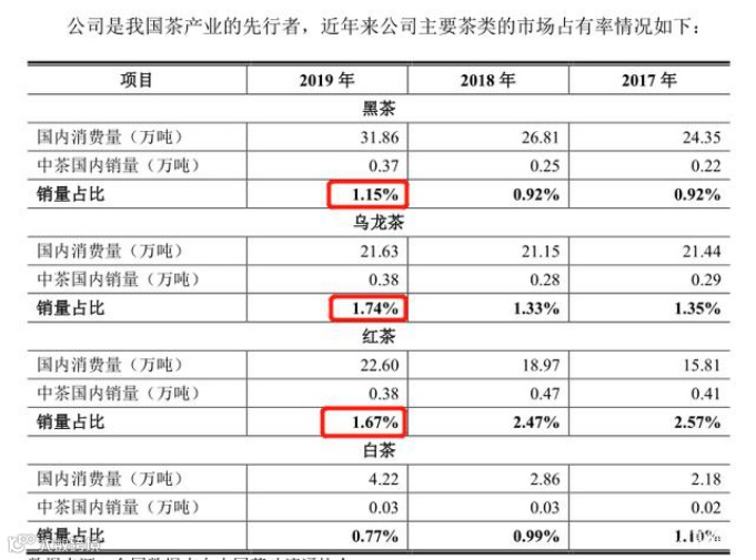 从中茶的招股说明书中可以看到,其业务涵盖了乌龙茶、普洱茶、六堡茶、黑茶、白茶、花茶、绿茶、红茶等几乎全部茶类。