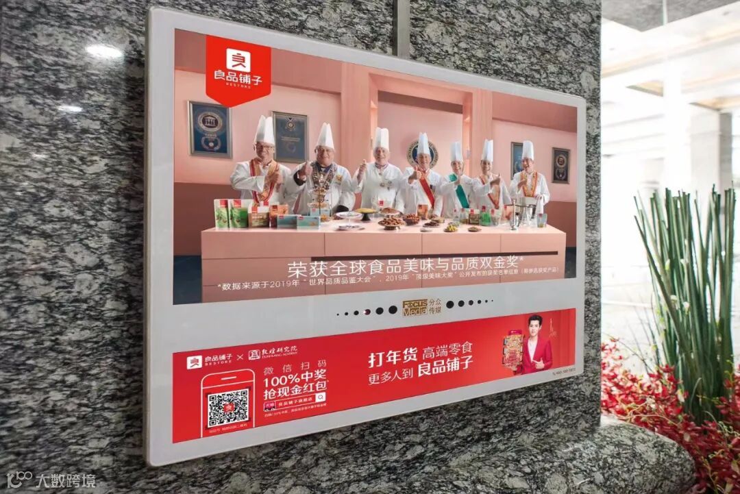 战略定位+战略级的传播,聚焦打造品牌中心化势能,这是良品铺子打造“更高端休闲零食“的营销配称,2019年,良品铺子以高端零食战略引领行业升级后,聚焦3亿城市主流人群的必经生活空间,在分众传媒电梯及影院媒体开启大量广告投放,锁定高端用户心智是其认知度快速增长的重要渠道,将更高端落实在对每一块屏幕所面对的人群的精准投放上。数据也验证了这一战略的有效。