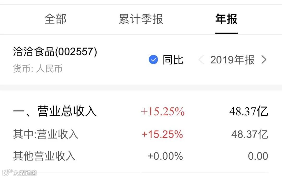 数据显示,2019年洽洽食品实现营业收入约48.37亿元,同比增长15.25%;归属于上市公司股东的净利润约6.04亿元,同比增长39.44%;归属于上市公司股东的扣除非经常性损益的净利润约4.82亿元,同比增长46.37%,成绩非常亮眼。