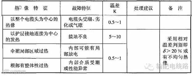 1. 一般缺陷:电缆终端接头的金属导体相对温差小于15K;