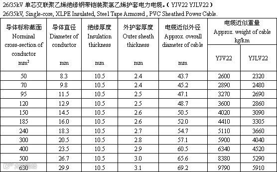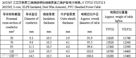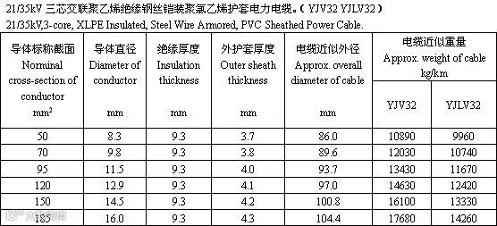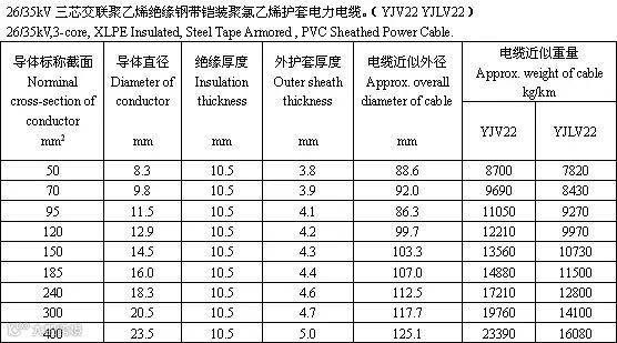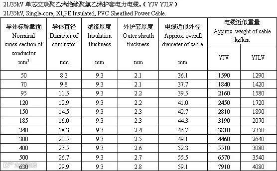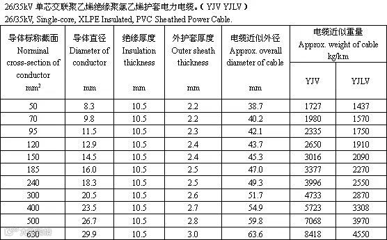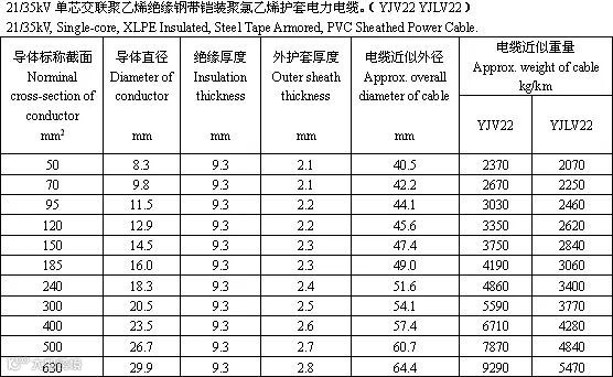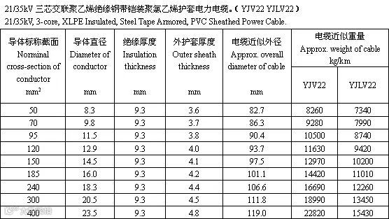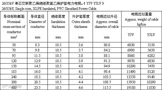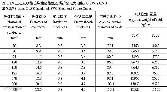 交联聚乙烯绝缘电力电缆是采用化学方法或物理方法,使聚乙烯分子由线型分子结构转变为三维网状结构,由热塑性的聚乙烯变成热固性的交联聚乙烯,从而提高了聚乙烯的耐老化性能、机械性能和耐环境能力,并保持了优良的电气性能。以下根据厂家的样本整理出35kV的电力电缆的参数供大家参考。