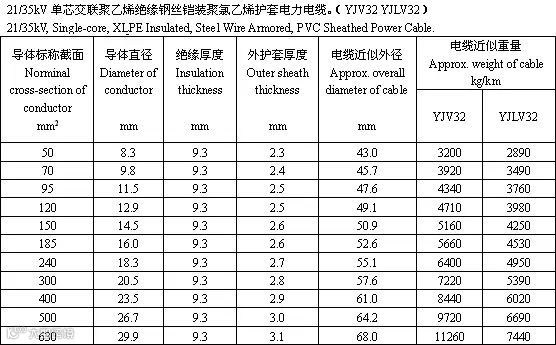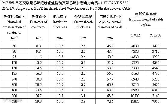单芯交联聚乙烯绝缘钢丝铠装电力电缆(YJV32、YJLV32、YJV33、YJLV33)