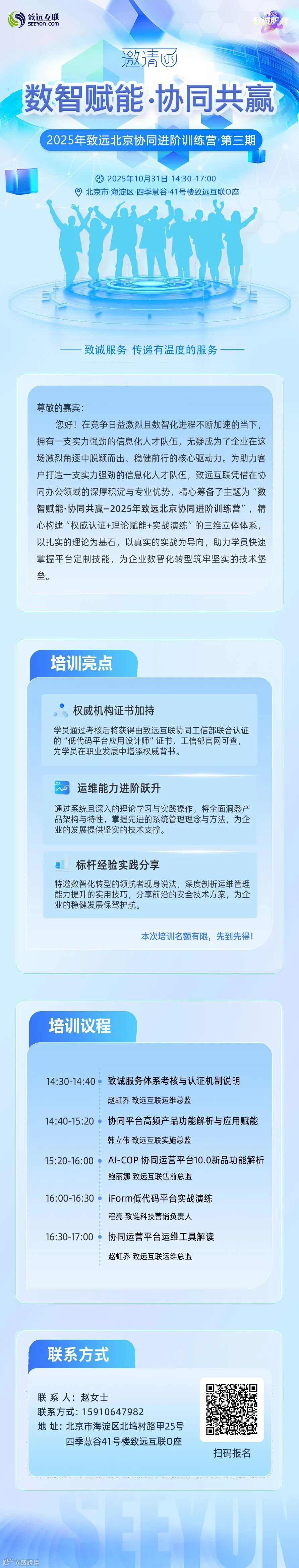 邀请函 | 数智赋能·协同共赢 2025年致远北京协同进阶训练营-第三期 致远北京