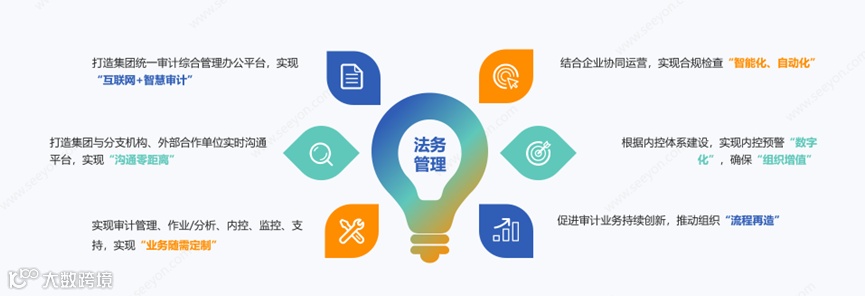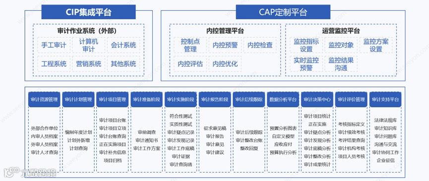 实现审计管理、作业/分析、内控、监控、支持,实现“业务随需定制”