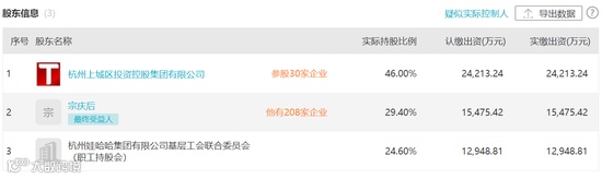 娃哈哈集团有限公司创建于1987年,为中国最大全球第五的食品饮料生产企业。根究公司股权架构,杭州上城区投资控股集团有限公司持股46%,娃哈哈董事长兼总经理宗庆红持股29.4%,为最终受益人。娃哈哈基层工会联合委员会持股24.6%。