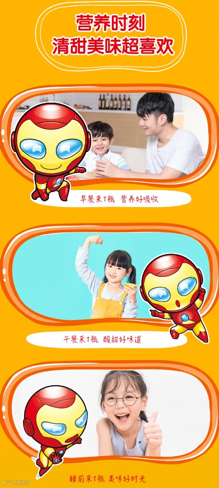 直观表达了产品是给孩子补铁的品类属性,也有孩子全能发展,成为大侠的美好寓意!