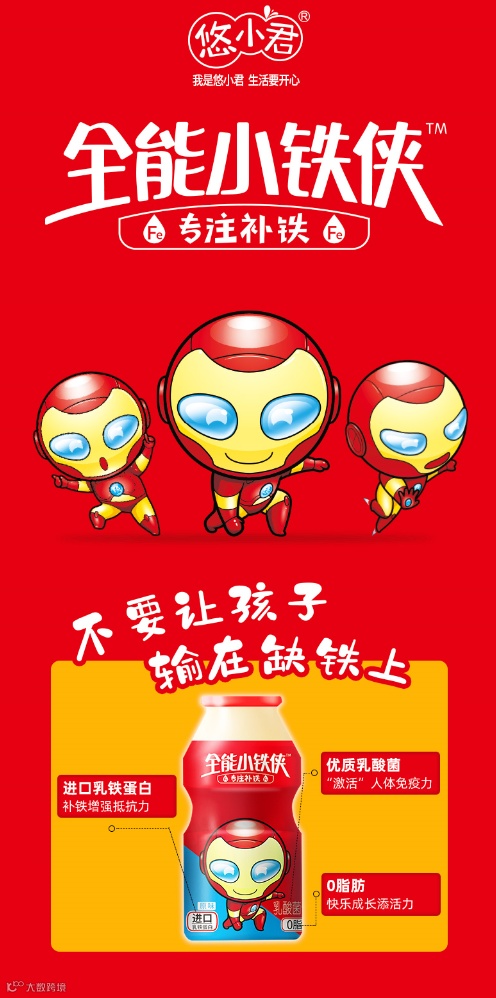 面对中国三亿儿童缺铁问题,市场上竟然无一个专注补铁的品牌,这是个巨大的蓝海市场,悠小君全能小铁侠系列产品为此而生。
