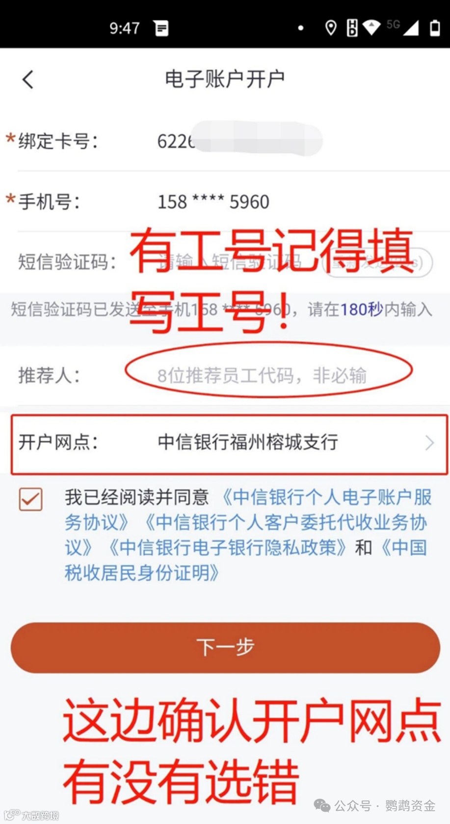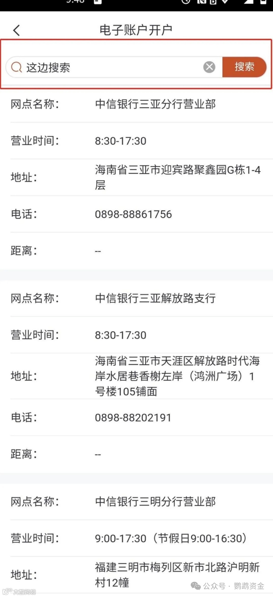 5.选择开户网点(有工号选择工号,没有工号选择搜索网点)