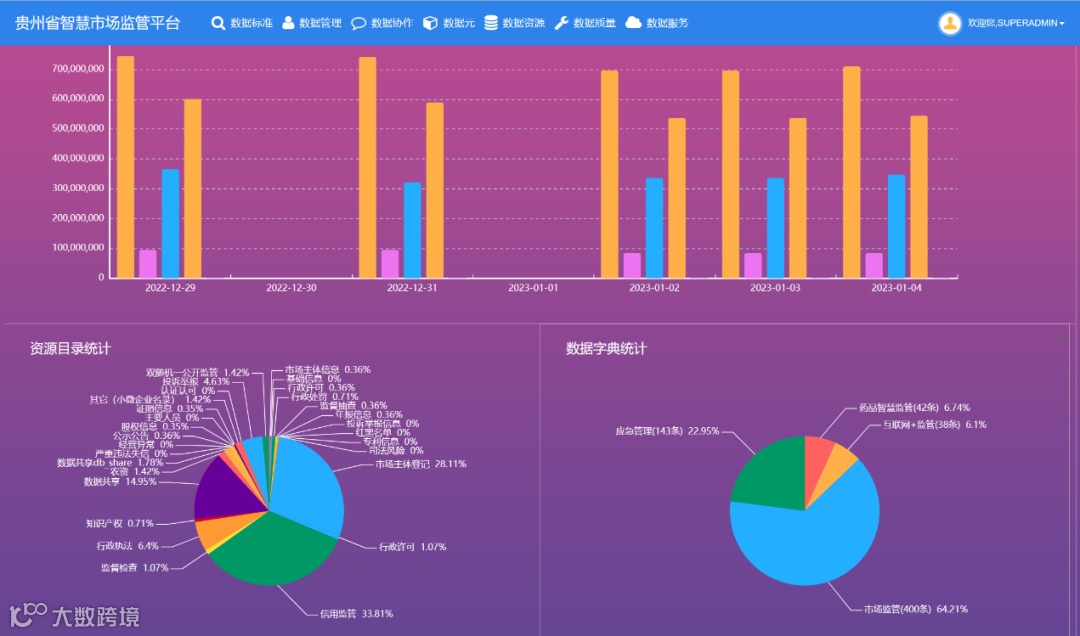 三是构建市场监管源数据库、初始数据库、标准基础数据库、主题库、市场监管数据资源目录等数据资源,搭建起贵州省市场监管大数据中心。
